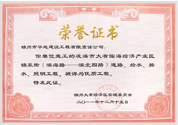 企業(yè)10余年開拓進(jìn)取過程中先后榮獲“遼寧省建筑業(yè)優(yōu)秀企業(yè)”“遼寧省AAAAA級(jí)信用企業(yè)”“遼寧省建設(shè)工程優(yōu)質(zhì)結(jié)構(gòu)企業(yè)”“遼寧省建設(shè)工程世紀(jì)杯(省優(yōu)質(zhì)工程)企業(yè)”連續(xù)6年榮獲“遼寧省守合同重信用企業(yè)”,連續(xù)5年榮獲“重點(diǎn)工程招投標(biāo)領(lǐng)域AAA級(jí)信用企業(yè)”,連續(xù)10年榮獲“錦州市先進(jìn)企業(yè)”及安全生產(chǎn)目標(biāo)管理先進(jìn)單位”“優(yōu)秀誠(chéng)信企業(yè)””國(guó)家AAAA級(jí)旅游景區(qū)””省級(jí)生態(tài)旅游示范區(qū)””遼寧省省級(jí)旅游度假區(qū)”等榮譽(yù),并通過質(zhì)量管理體系、環(huán)境管理體系、職業(yè)健康安全管理體系認(rèn)證。