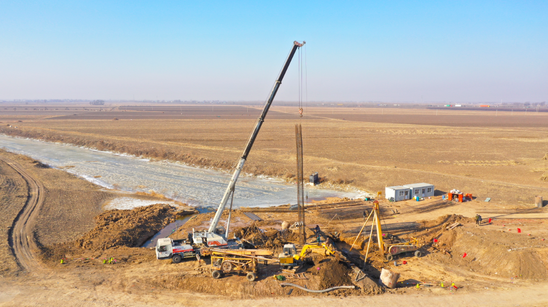 2022年1月7日,放心橋工程正式啟動(dòng),場(chǎng)地平整、臨建搭設(shè)、圍堰引流及樁基礎(chǔ)施工等工序。